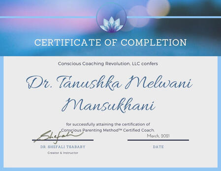 Dr. Tanushka has studied and certified under Dr. Shefali Tsabary as a Conscious Parenting Coach Practitioner (Conscious Parenting Coaching Program Methodology) She graduated from the University of Bombay (Bachelor of Dentistry) and then completed her MBA-Health at University of Ateneo De Manila.